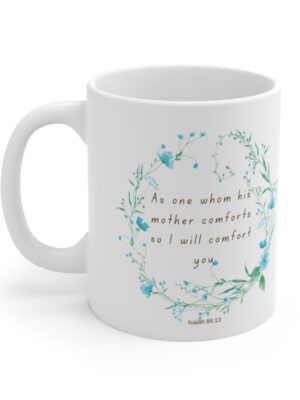 Lead and BPA-free white ceramic with a glossy finish sleek and polished look 11oz (0.33 l) Â perfect for that strong coffee boost in the morning. The C-shaped easy-grip handle helps keep the cup steady even in a rush.