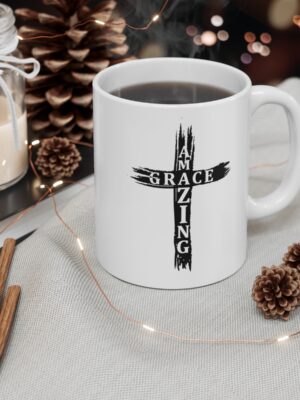 Lead and BPA-free white ceramic with a glossy finish sleek and polished look 11oz (0.33 l) Â perfect for that strong coffee boost in the morning. The C-shaped easy-grip handle helps keep the cup steady even in a rush.
